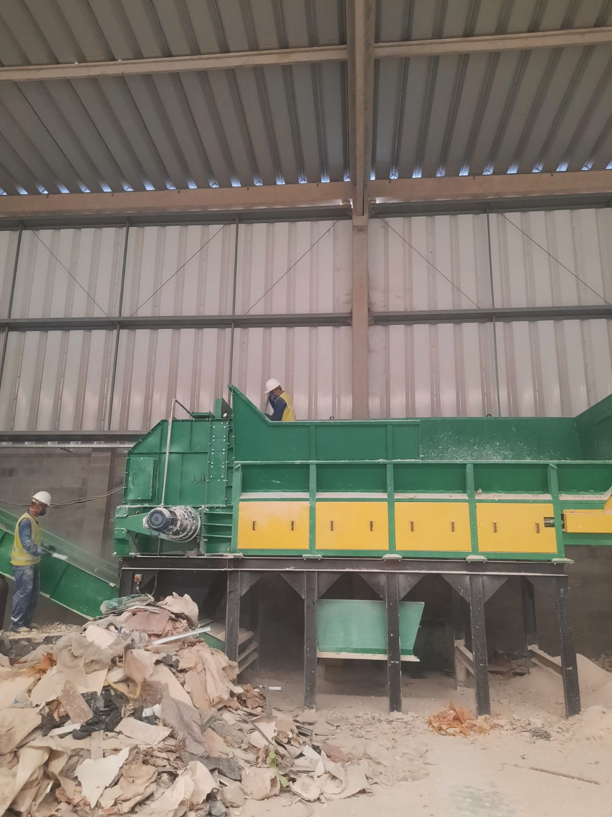 Eficiência e produtividade definem essa solução, desenvolvida com estrutura metálica robusta. A moega conta com um transportador reforçado de velocidade ajustável e uma guilhotina regulável, permitindo uma dosagem precisa e contínua do resíduo na linha de processamento.