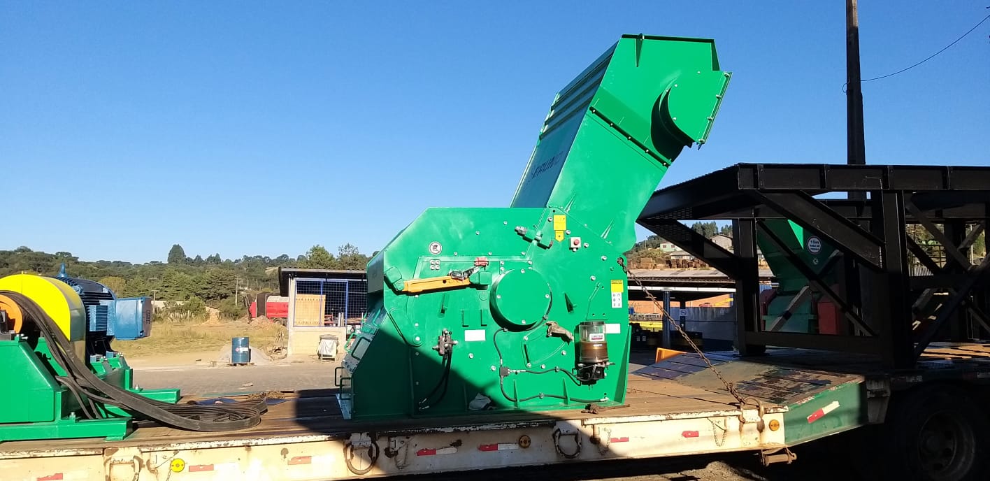 Trituração de diferentes produtos sendo aplicável madeira reciclada pré-triturada, cascas de pinus, eucalipto material proveniente de limpeza de pátio de toras.