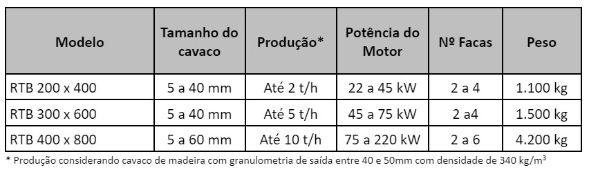 O RTB é a aplicação ideal para o aproveitamento de cavaco over size, proveniente de processos de classificação de biomassa. A versatilidade desta solução também permite o processamento de materiais como: