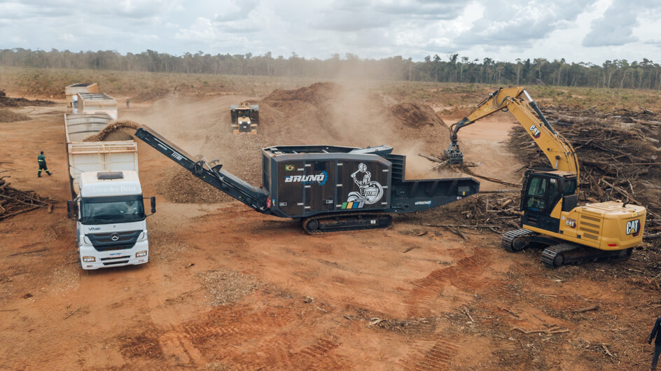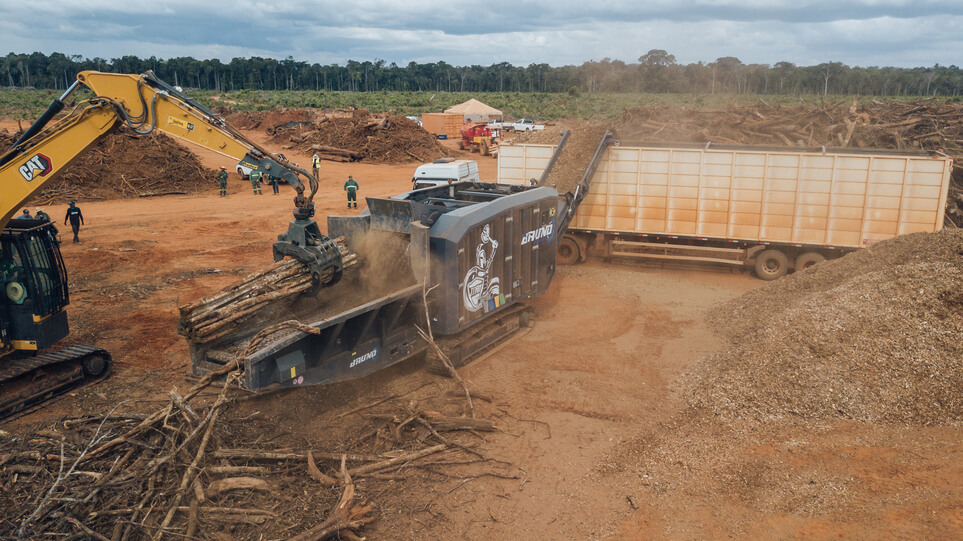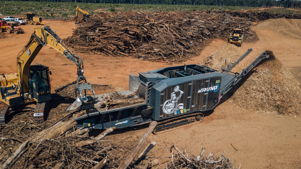 Indicado para eucalipto e pinus (árvore inteira e toras curtas), supressão nativa, tocos e acácia, galhadas e casca.